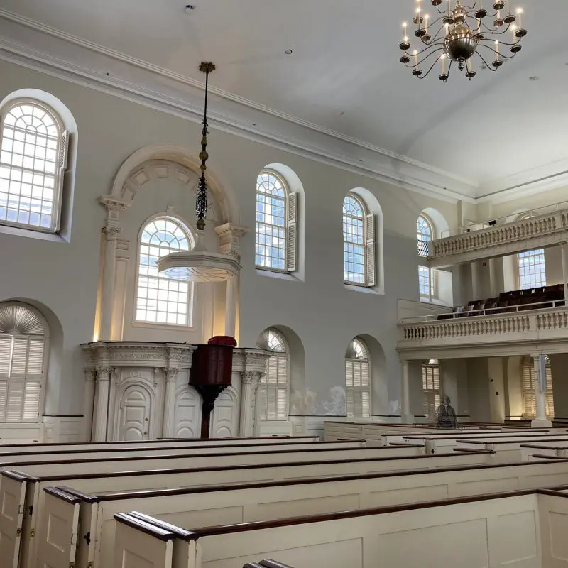 In 1873, the South Church congregation built a new church on Boylston Street in Copley Square, where the congregation remains today. Sometimes called the “New” Old South Church, the building is a National Historic Landmark and is considered one of the finest examples of High Victorian Gothic churches in New England. The South Church annually worships at their original home, the Old South Meeting House, on the Sunday before Thanksgiving.