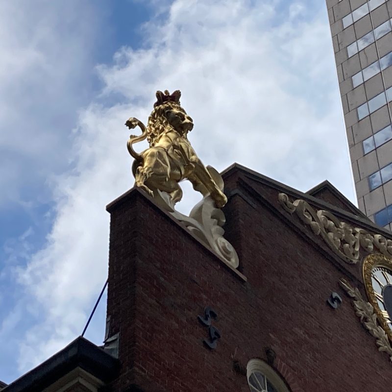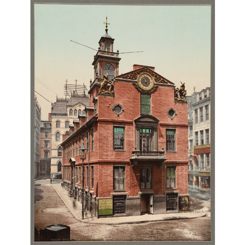 The site of Boston’s wooden Town House, where the General Court met, is where the Old State House stands today.